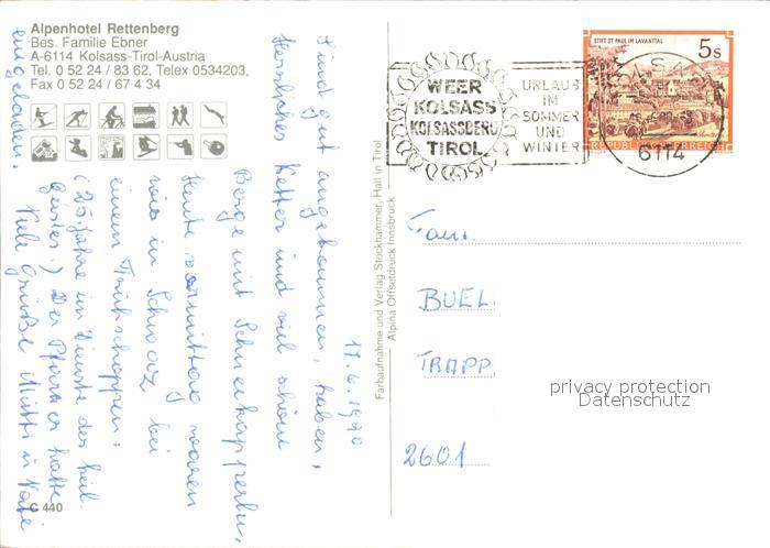 72375692 alte Postkarte Kolsass Alpenhotel Rettenberg postalisch gelaufen Erhaltung siehe scans KatCode: 11390332070322