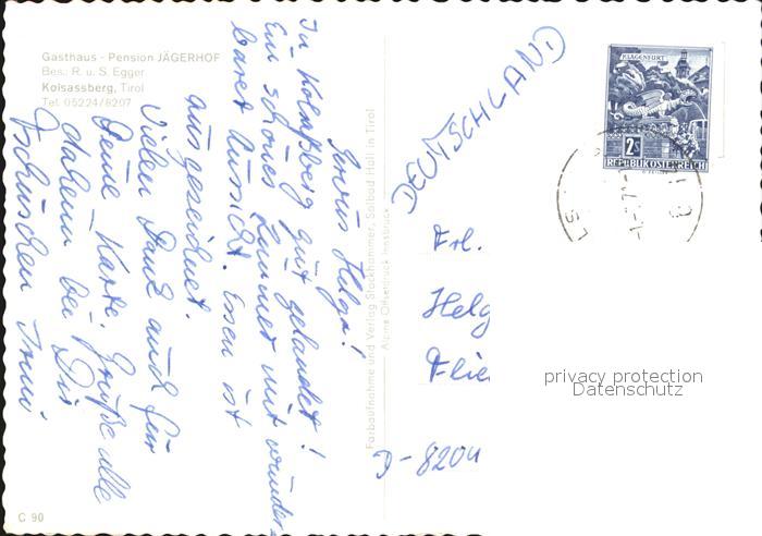 72537601 alte Postkarte Kolsassberg Gasthaus Pension Jaegerhof postalisch gelaufen Erhaltung siehe scans [AndreD76 kt119box] KatCode: 11390332070323