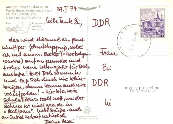 72693446 alte Postkarte Kolsassberg Gasthof Jaegerhof Winter postalisch gelaufen Erhaltung siehe scans [KathaD79] KatCode: 11390332070323