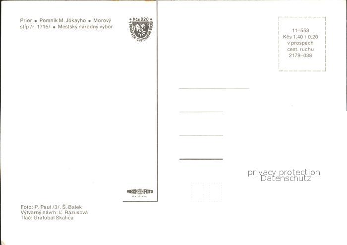 Komarno Komarom Slovakia Prior Pomnik M Jokayho Marovy stlp Mestsky narodny vybor postalisch nicht gelaufen Erhaltung siehe scans