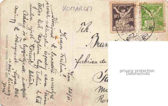 74150440 old postcard Komarom Komarno Slovakia Klapkaplatz mit Stadthaus Denkmal postalisch gelaufen Erhaltung siehe scans [FriedD77] KatCode: 11490