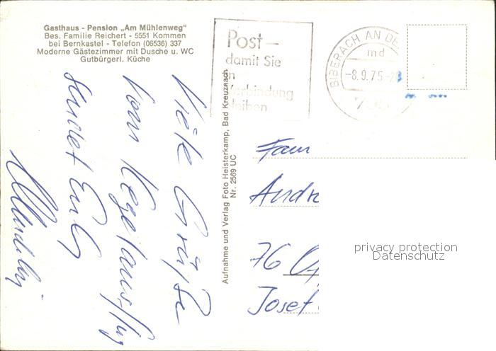 72117684 alte Postkarte Kommen Gasthaus Pension Am Muehlenweg postalisch gelaufen Erhaltung siehe scans KatCode: 11110007231071