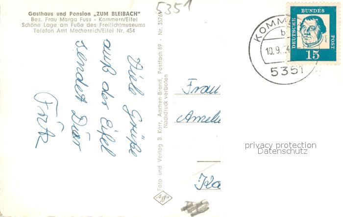 33701329 alte Postkarte Kommern Commern Mechernich Gasthaus Pension Zum Bleibach Gastraeume Bar postalisch gelaufen Erhaltung siehe scans [WerneD78] KatCode: 11110005366028