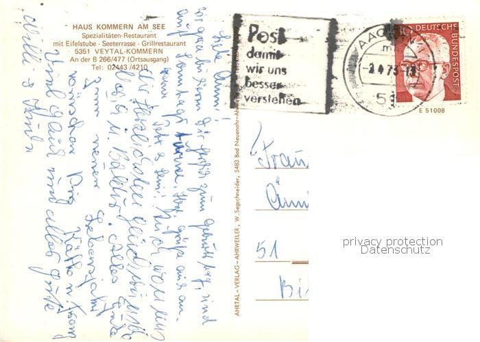 73843967 Kommern Commern Mechernich Haus Kommern am See Gastraeume postalisch gelaufen Erhaltung siehe scans [WerneD78] alte Postkarte Wern Katcode 11110005366028