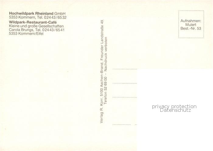 73775357 Kommern Commern Mechernich Hochwildpark Rheinland Wildpark Restaurant Cafe Gastraeume Terrasse postalisch nicht gelaufen Erhaltung siehe scans [WerneD78] KatCode: 11110005366028