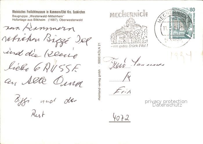 72289632 alte Postkarte Kommern Mechernich Rheinisches Freilichtmuseum Baugruppe Westerwald-Mittelrhein postalisch gelaufen Erhaltung siehe scans KatCode: 11110005366028