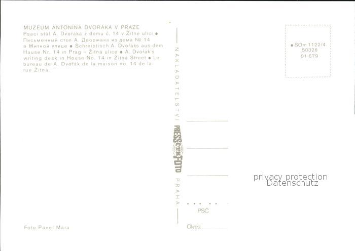 Komponist Schreibtisch Antonin Dvorak Haus Nr. 14 Prag postalisch nicht gelaufen Erhaltung siehe scans [PaolaD17 kt110box]