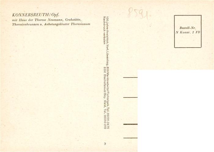 73949421 Konnersreuth Oberpfalz mit Haus der Therese Neumann Grabstaette Theresienbrunnen Anbetungskloster Theresianum postalisch nicht gelaufen Erhaltung siehe scans [WerneD78] KatCode: 11110009377131