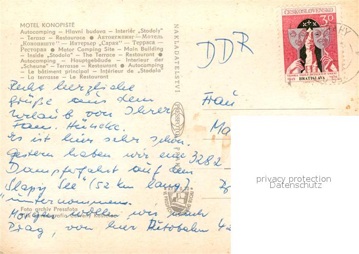 old postcard Konopiste Tschechien Motel Restaurant Autocamping Reiten postalisch gelaufen Erhaltung siehe scans [FriedD77]