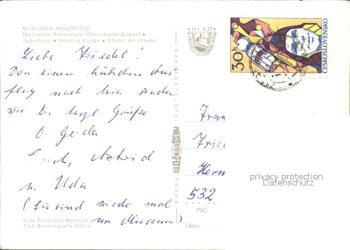old postcard Konopiste Tschechien Myslivna postalisch gelaufen Erhaltung siehe scans