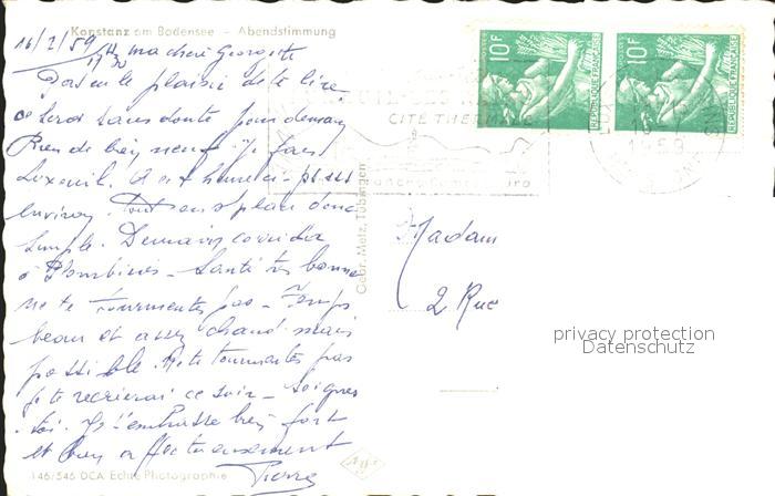 72312810 alte Postkarte Konstanz Bodensee Abendstimmung postalisch gelaufen Erhaltung siehe scans KatCode: 11110008335043