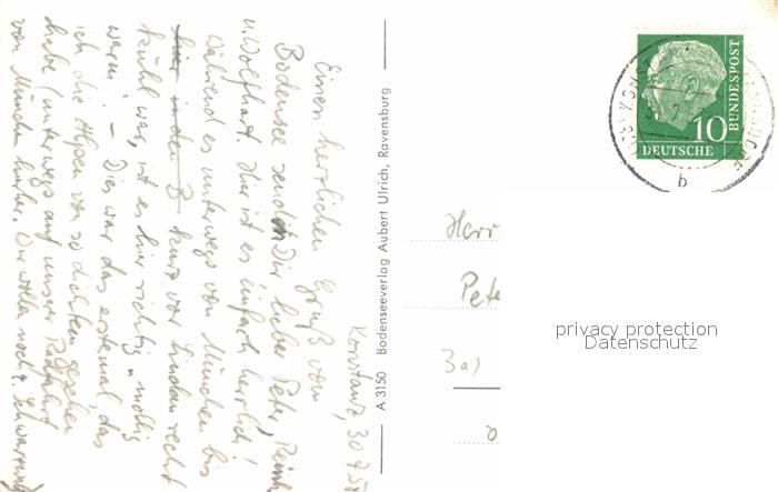 72823234 alte Postkarte Konstanz Bodensee Basilika Altstadt Rheinausfluss Fliegeraufnahme postalisch gelaufen Erhaltung siehe scans [FriedD77] KatCode: 11110008335043