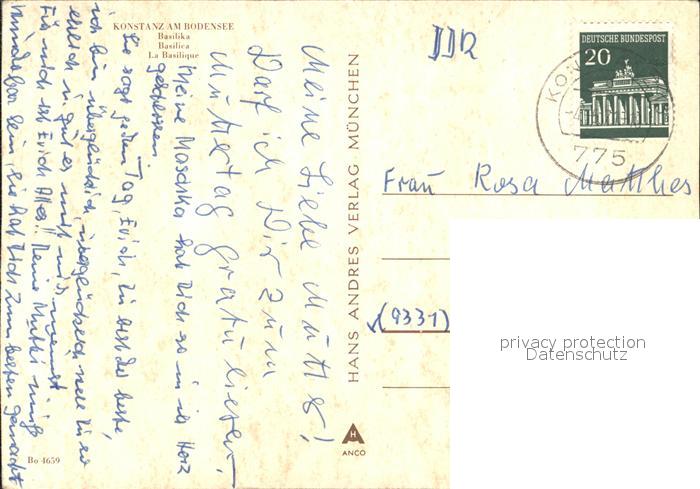 72368048 alte Postkarte Konstanz Bodensee Basilika postalisch gelaufen Erhaltung siehe scans KatCode: 11110008335043