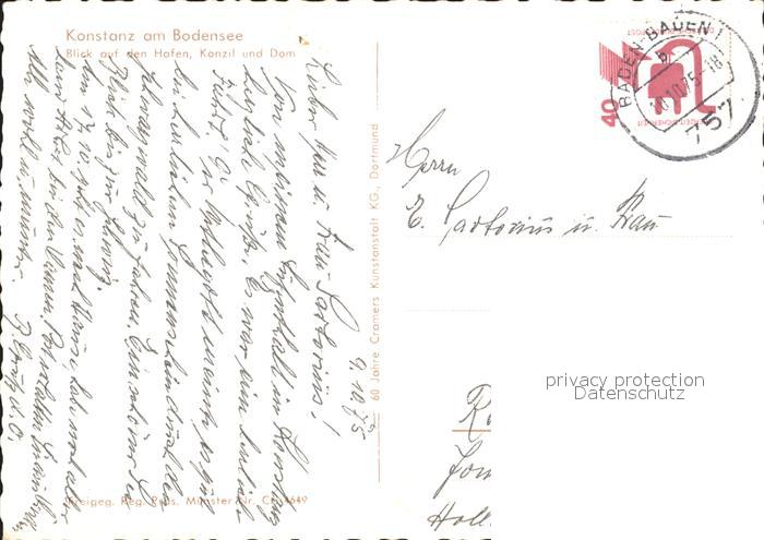 72290903 alte Postkarte Konstanz Bodensee Blick auf den Hafen Konzil und Dom postalisch gelaufen Erhaltung siehe scans KatCode: 11110008335043