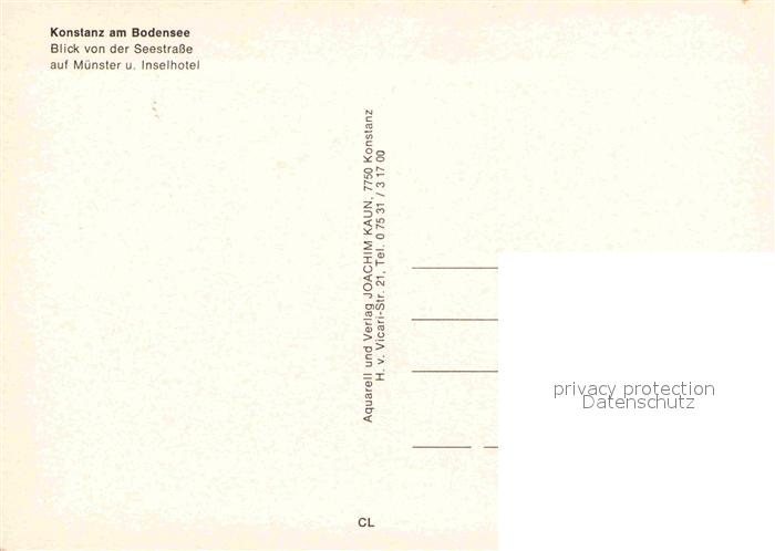 72872241 Konstanz Bodensee Blick von der Seestrasse auf Muenster und Inselhotel postalisch nicht gelaufen Erhaltung siehe scans [FriedD77] KatCode: 11110008335043