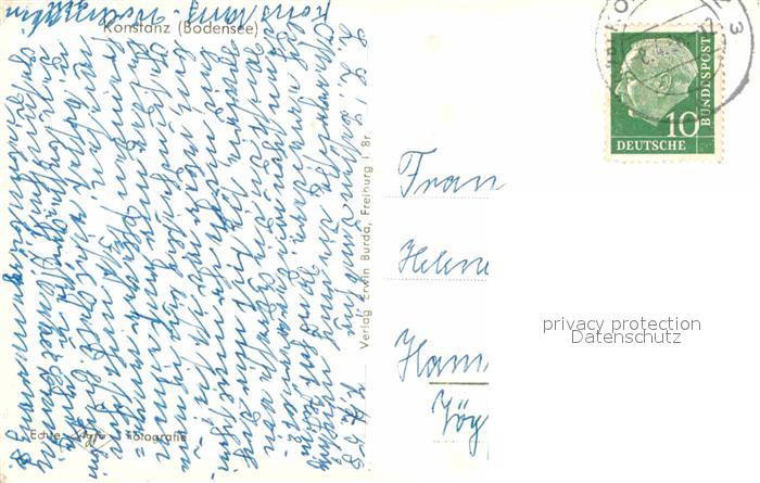 72812532 alte Postkarte Konstanz Bodensee Bruecke Hafen Faehre Gesamtansicht mit Alpenpanorama postalisch gelaufen Erhaltung siehe scans [FriedD77] KatCode: 11110008335043