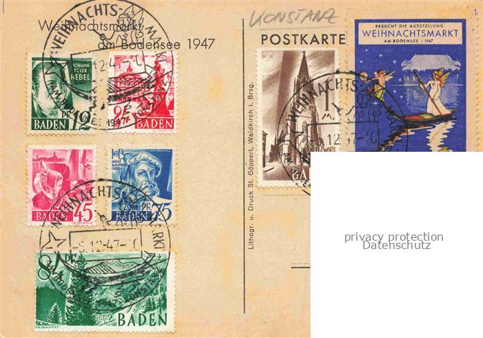 74059860 alte Postkarte KONSTANZ Bodensee BW Ausstellung Weihnachtsmarkt Sondermarken Kuenstlerkarte postalisch gelaufen Erhaltung siehe scans [FriedD77] KatCode: 11110008335043