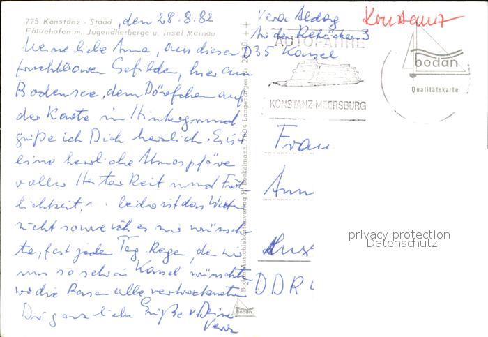 72497540 alte Postkarte Konstanz Bodensee Faehrhafen Jugendherberge Insel Mainau postalisch gelaufen Erhaltung siehe scans KatCode: 11110008335043