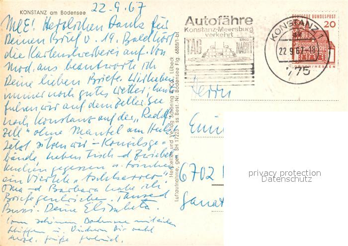 73110355 alte Postkarte Konstanz Bodensee Fliegeraufnahme postalisch gelaufen Erhaltung siehe scans [NatalD47] KatCode: 11110008335043