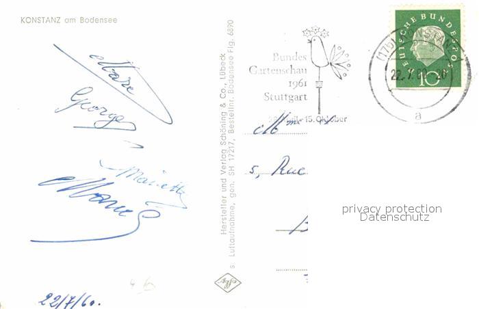 72826554 alte Postkarte Konstanz Bodensee Fliegeraufnahme postalisch gelaufen Erhaltung siehe scans [PaolaD17] KatCode: 11110008335043