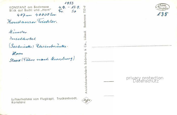 72792562 Konstanz Bodensee Fliegeraufnahme Bucht Horn postalisch nicht gelaufen Erhaltung siehe scans [AndreD76] KatCode: 11110008335043
