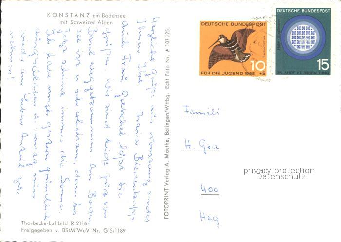 72305123 alte Postkarte Konstanz Bodensee Fliegeraufnahme mit Alpen postalisch gelaufen Erhaltung siehe scans KatCode: 11110008335043