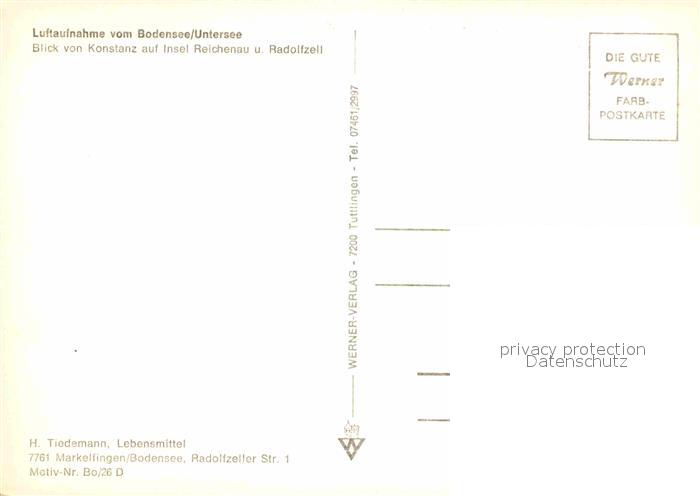 72725807 Konstanz Bodensee Fliegeraufnahme mit Insel Reichenau und Radolfzell postalisch nicht gelaufen Erhaltung siehe scans [WerneD78] KatCode: 11110008335043