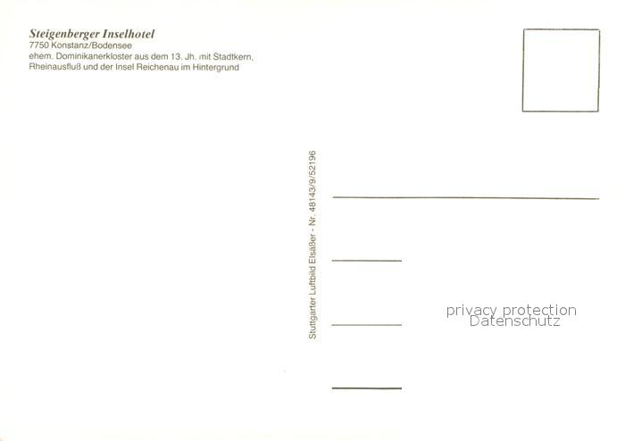 73725725 Konstanz Bodensee Fliegeraufnahme mit Steigenberger Inselhotel und Rheinausfluss postalisch nicht gelaufen Erhaltung siehe scans [WerneD78] KatCode: 11110008335043