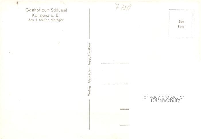 73852835 Konstanz Bodensee Gasthof zum Schluessel postalisch nicht gelaufen Erhaltung siehe scans [WerneD78] KatCode: 11110008335043
