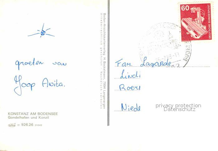 72655104 alte Postkarte Konstanz Bodensee Gondelhafen und Konzil postalisch gelaufen Erhaltung siehe scans [LiesaD40] KatCode: 11110008335043