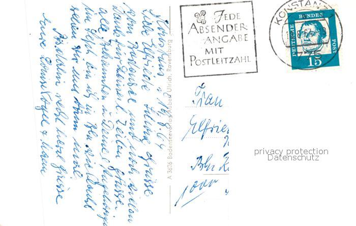 72948101 alte Postkarte Konstanz Bodensee Hafen Basilika Rhein Bruecke Insel Mainau Fliegeraufnahme postalisch gelaufen Erhaltung siehe scans [FriedD77] KatCode: 11110008335043