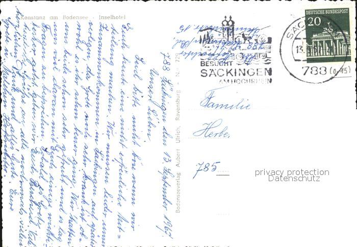 72449409 alte Postkarte Konstanz Bodensee Inselhotel postalisch gelaufen Erhaltung siehe scans KatCode: 11110008335043