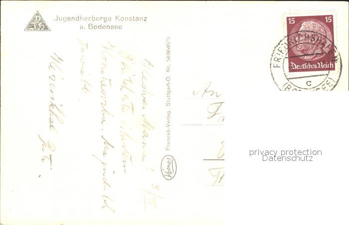 32043851 alte Postkarte Konstanz Bodensee Jugendherberge Konstan postalisch gelaufen Erhaltung siehe scans KatCode: 11110008335043