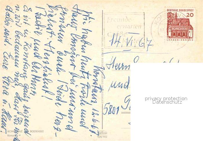 72688002 alte Postkarte Konstanz Bodensee Konzil Restaurant Wasserspiele postalisch gelaufen Erhaltung siehe scans [FriedD77] KatCode: 11110008335043