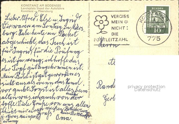 72375237 alte Postkarte Konstanz Bodensee Landeplatz Staad der Autofaehre postalisch gelaufen Erhaltung siehe scans KatCode: 11110008335043