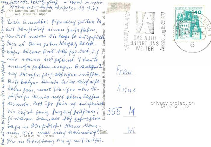 72878725 alte Postkarte Konstanz Bodensee mit Schweizer Alpen Fliegeraufnahme postalisch gelaufen Erhaltung siehe scans [FriedD77] KatCode: 11110008335043