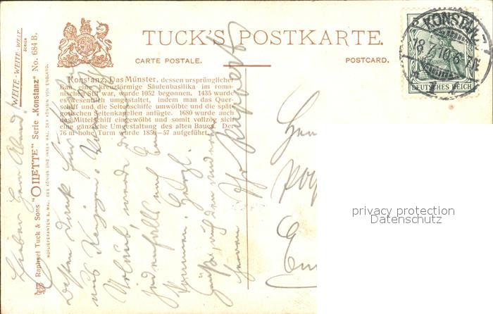 72138970 alte Postkarte Konstanz Bodensee Muenster postalisch gelaufen Erhaltung siehe scans KatCode: 11110008335043
