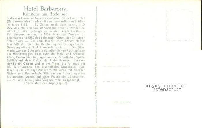 71838720 Konstanz Bodensee Obermarkt Hotel Barbarossa Historisches Gebaeude Fresken Haeberlin Geschichte postalisch nicht gelaufen KatCode: 11110008335043