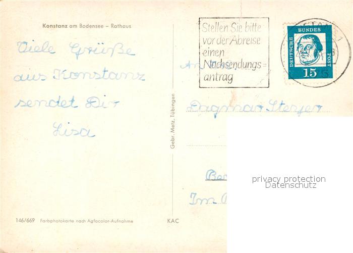 73013665 alte Postkarte Konstanz Bodensee Rathaus postalisch gelaufen Erhaltung siehe scans [WerneD78] KatCode: 11110008335043