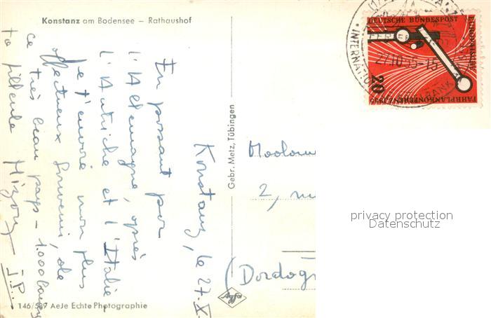 73101279 alte Postkarte Konstanz Bodensee Rathaushof postalisch gelaufen Erhaltung siehe scans [KathaD81] KatCode: 11110008335043