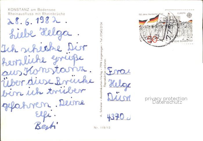 72580894 alte Postkarte Konstanz Bodensee Rheinausfluss mit Bruecke postalisch gelaufen Erhaltung siehe scans [LiesaD40] KatCode: 11110008335043