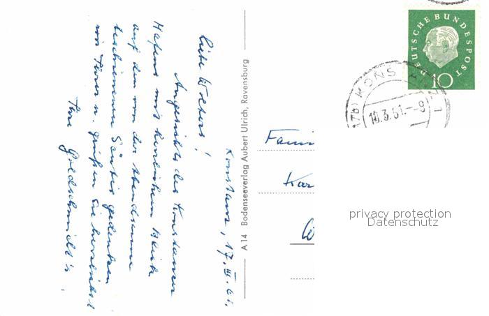 72812471 alte Postkarte Konstanz Bodensee Rheinausfluss mit Schweizer Alpen Fliegeraufnahme postalisch gelaufen Erhaltung siehe scans [FriedD77] KatCode: 11110008335043