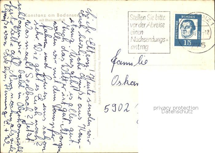 72580271 alte Postkarte Konstanz Bodensee Rheinausfluss postalisch gelaufen Erhaltung siehe scans [KathaD79] KatCode: 11110008335043