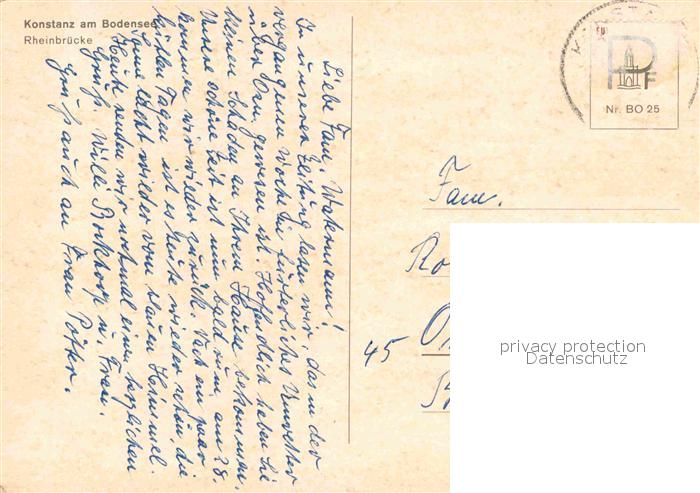 72859211 alte Postkarte Konstanz Bodensee Rheinbruecke postalisch gelaufen Erhaltung siehe scans [AndreD76] KatCode: 11110008335043