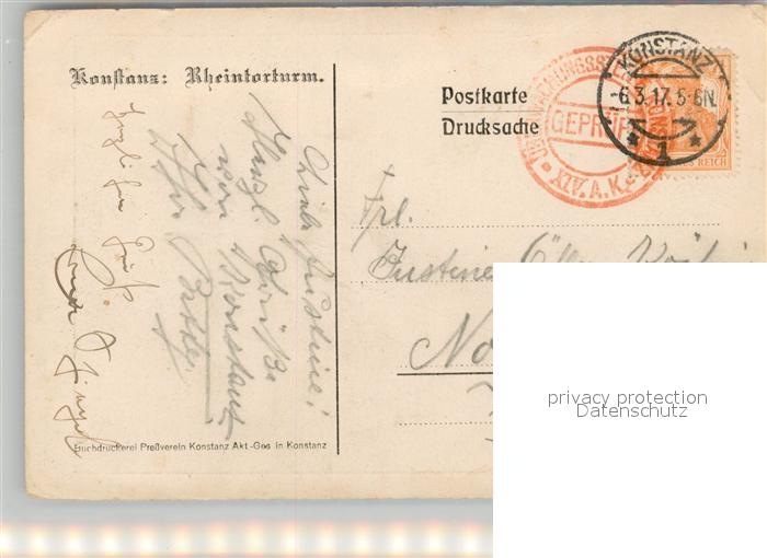 43057950 alte Postkarte Konstanz Bodensee Rheintorturm postalisch gelaufen Erhaltung siehe scans [KathaD81] KatCode: 11110008335043