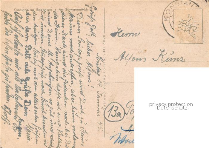 73162759 alte Postkarte Konstanz Bodensee Schwanenteich Kirche postalisch gelaufen Erhaltung siehe scans [KathaD81] KatCode: 11110008335043