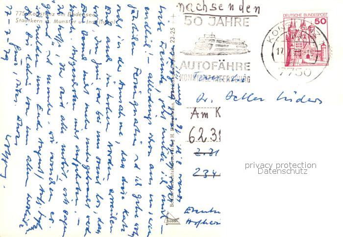 73152601 alte Postkarte Konstanz Bodensee Stadtkern mit Muenster und Inselhotel Fliegeraufnahme postalisch gelaufen Erhaltung siehe scans [FriedD77] KatCode: 11110008335043