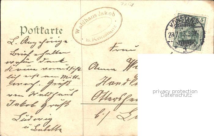 31840509 alte Postkarte Konstanz Bodensee Waldhaus Jakob Hotel Pension postalisch gelaufen Erhaltung siehe scans KatCode: 11110008335043