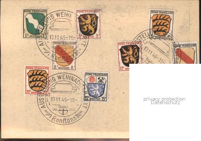 41585260 Konstanz Weihnachsausstellung Konzilbebaeude Kuenstlerkarte Wappen postalisch gelaufen Erhaltung siehe scans Alte Ansichtskarte Postkarte alte Postkarte hz_L Katcode 11110008335043