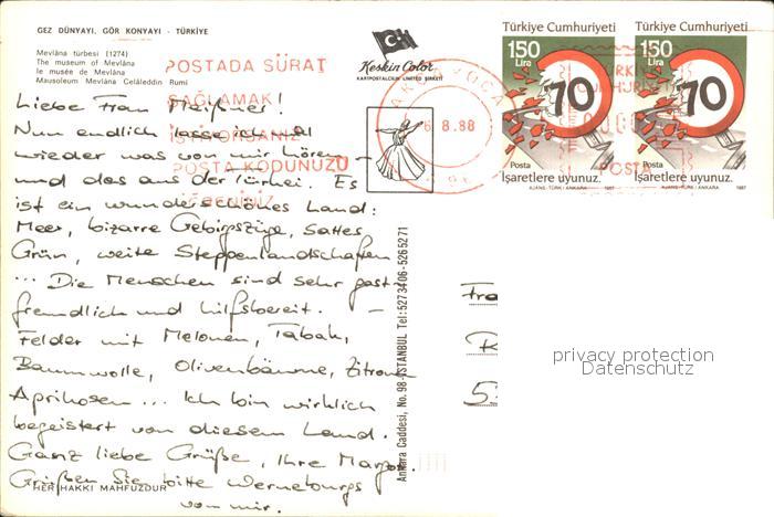 old postcard Konya Goer Konyayi Mausoleum Mevlana Celaleddin Rumi postalisch gelaufen Erhaltung siehe scans